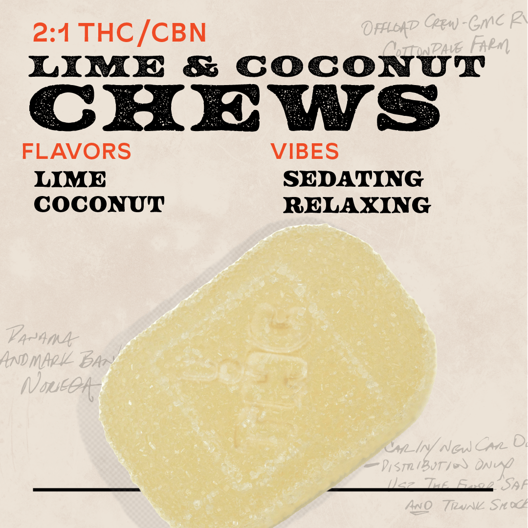 Lime and Coconut 2:1 THC:CBN 150mg 10pk Chews Indica