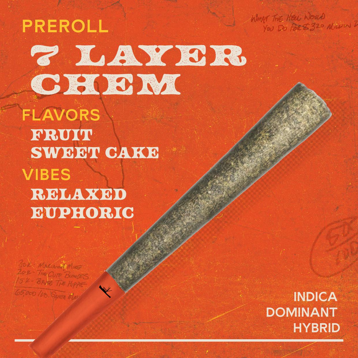 7 Layer Chem 1g Pre Roll Whole Flower Hybrid