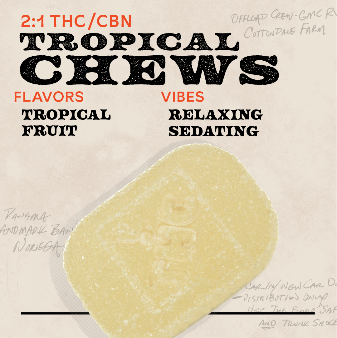 Tropical Fruit 2:1 THC:CBN 150mg 10pk Chews Indica