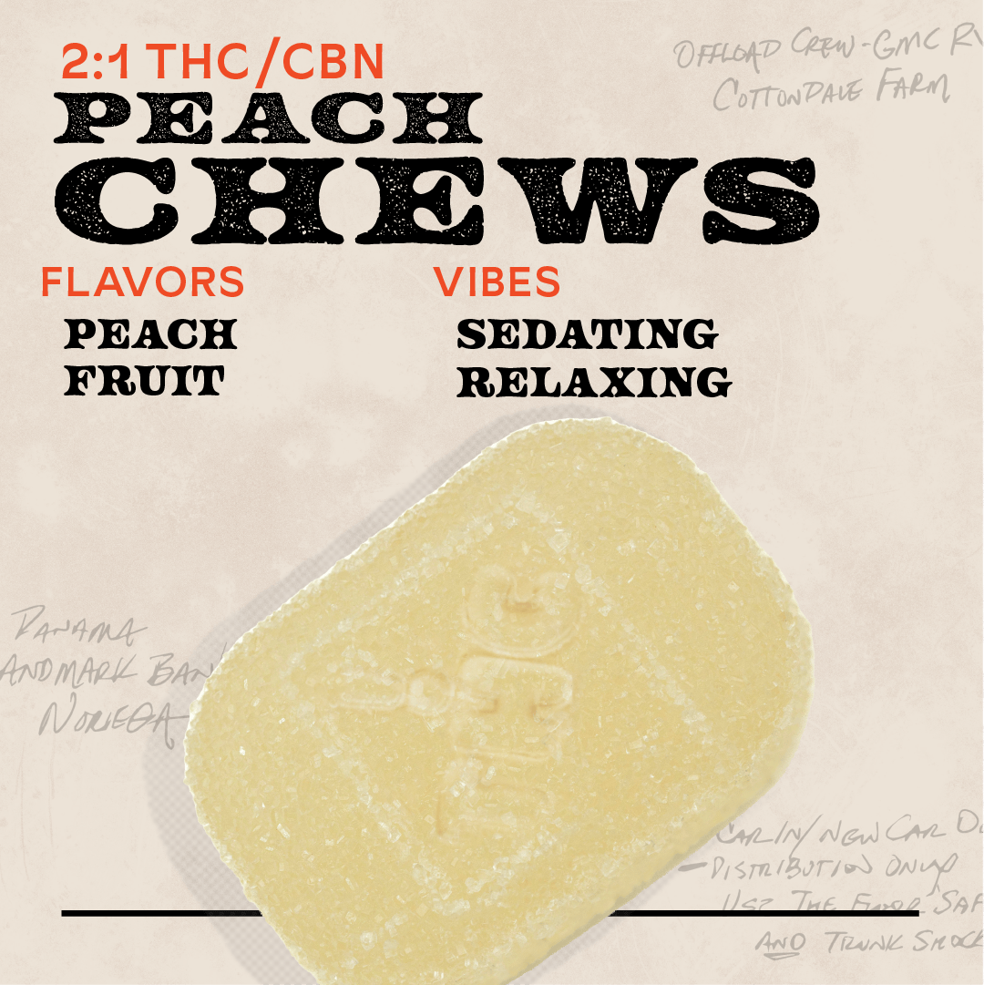 Peach 2:1 THC:CBN 150mg 10pk Chews Indica